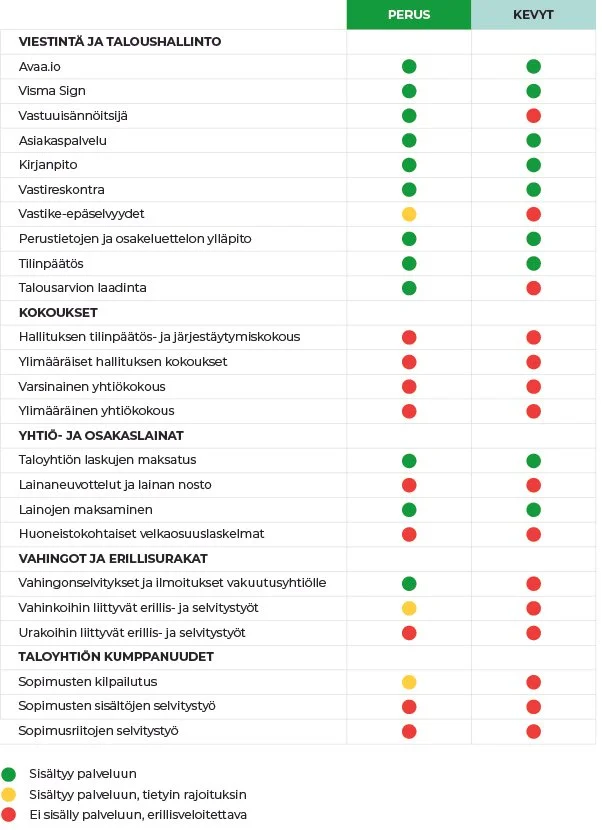 • Taloyhtiön hallituksen tuki ja neuvonta tarvittaessa, erillisveloitushinnaston mukaisesti.